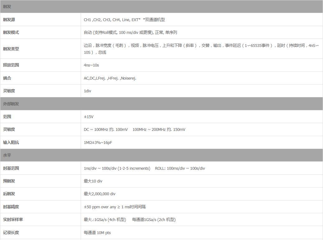 ○最大实时采样率为1GSa/s(4 通道机种)