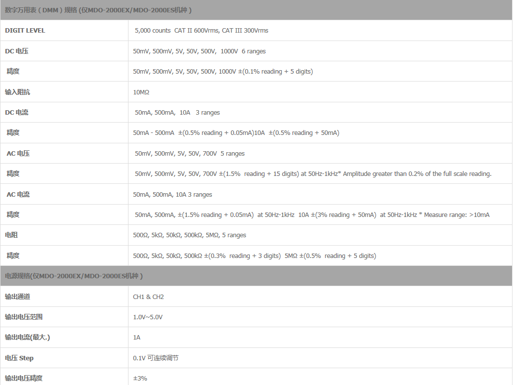 ○MDO-2000EX另配有数字万用表和电源