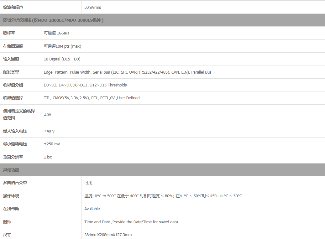 ○MDO-2000EC另配有逻辑分析仪