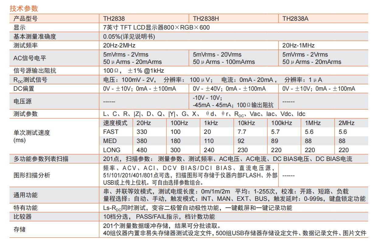TH2838A/TH2838H 精密阻抗分析仪