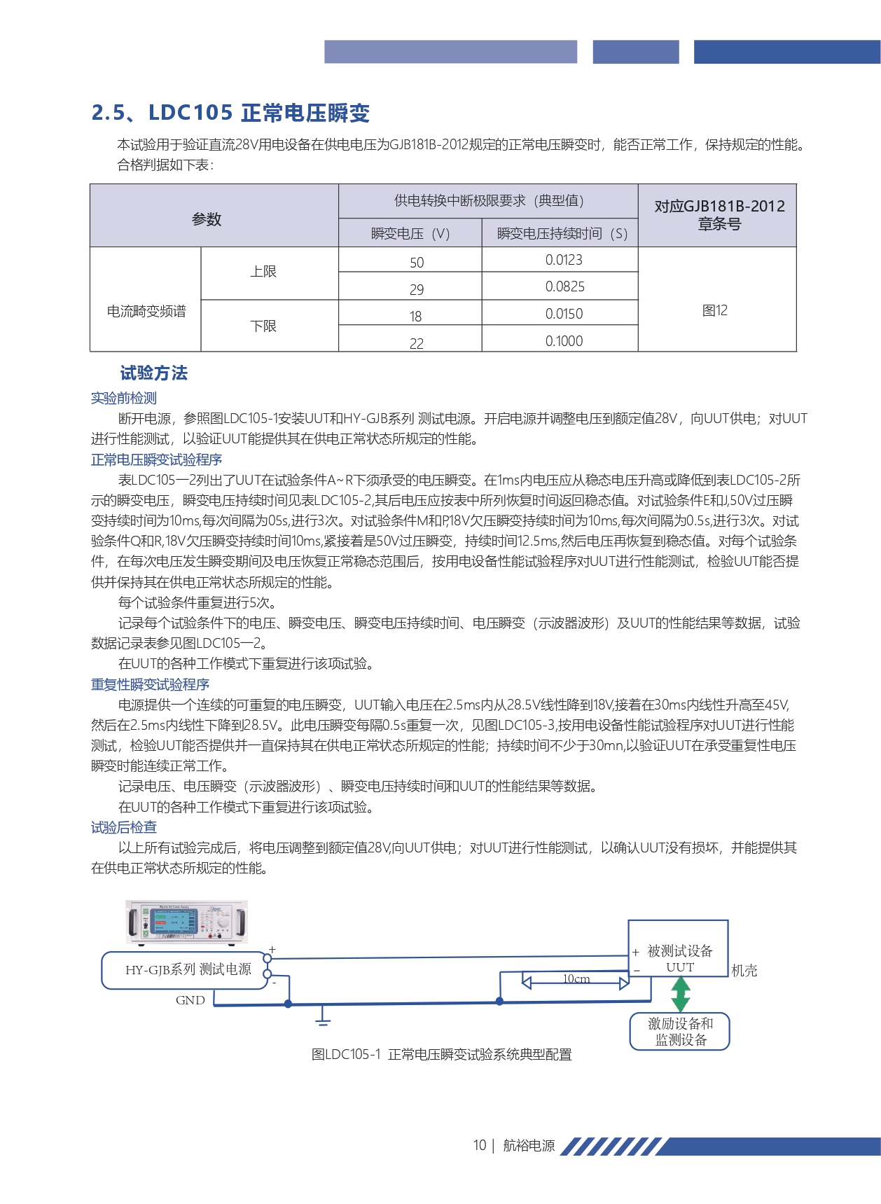 ■ HY-GJB 系列是一款直流稳压电源,适用于GJB 181B-2012 中,28V飞机供电特性标准测试。