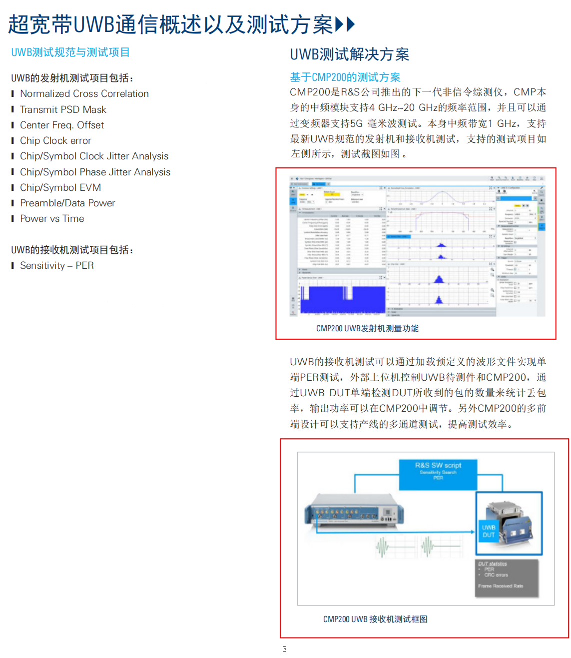 CMP200是R&S公司推出的下一代非信令综测仪,CMP本身的中频模块支持4 GHz~20 GHz的频率范围,并且可以通过变频器支持5G 毫米波测试。本身中频带宽1 GHz,支持最新UWB规范的发射机和接收机测试